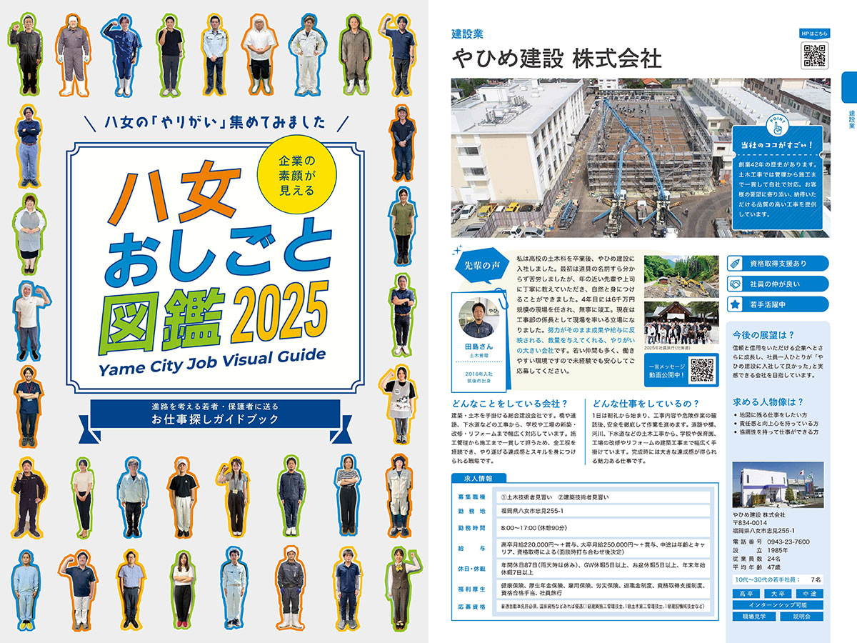 このたび、八女市が発行する中小企業紹介冊子「八女おしごと図鑑2025」 に、弊社の紹介記事を掲載いただきました。